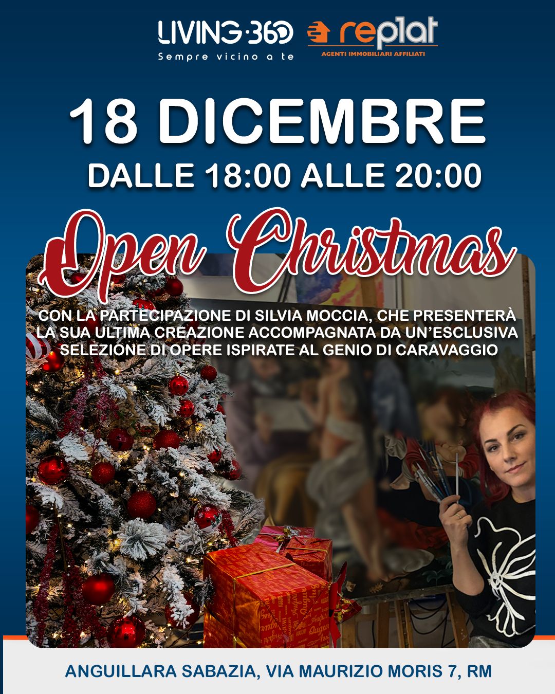 L’evento, dal titolo “Open Christmas”, vedrà la partecipazione dell’artista Silvia Moccia, che presenterà la sua ultima creazione accompagnata da una selezione esclusiva di opere ispirate al genio di Caravaggio, riletto attraverso una sensibilità contemporanea.