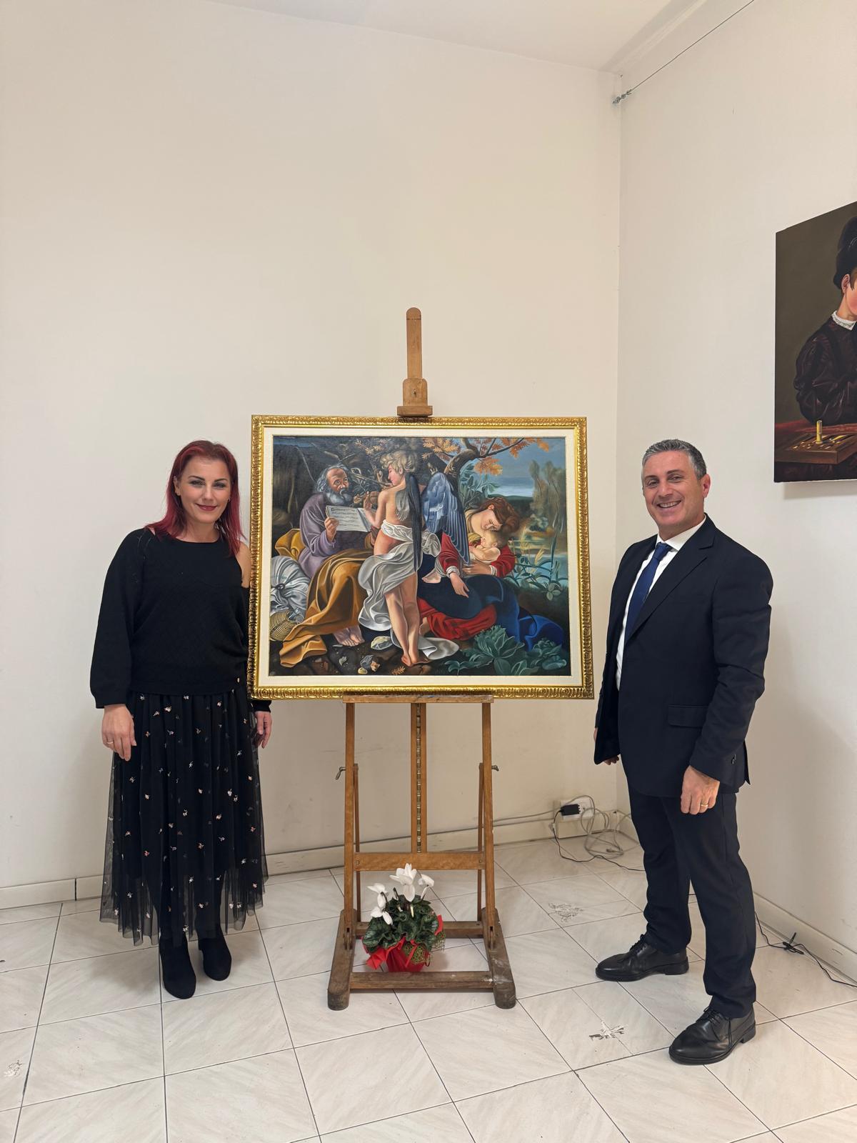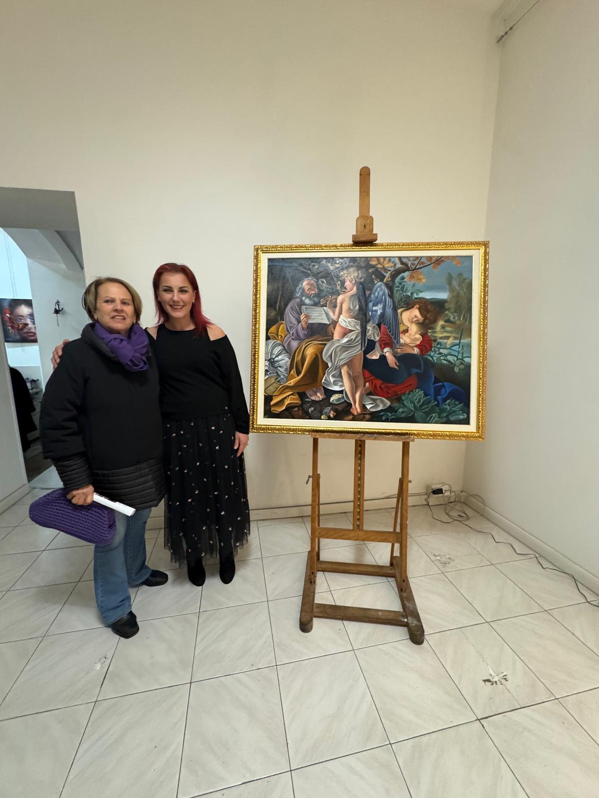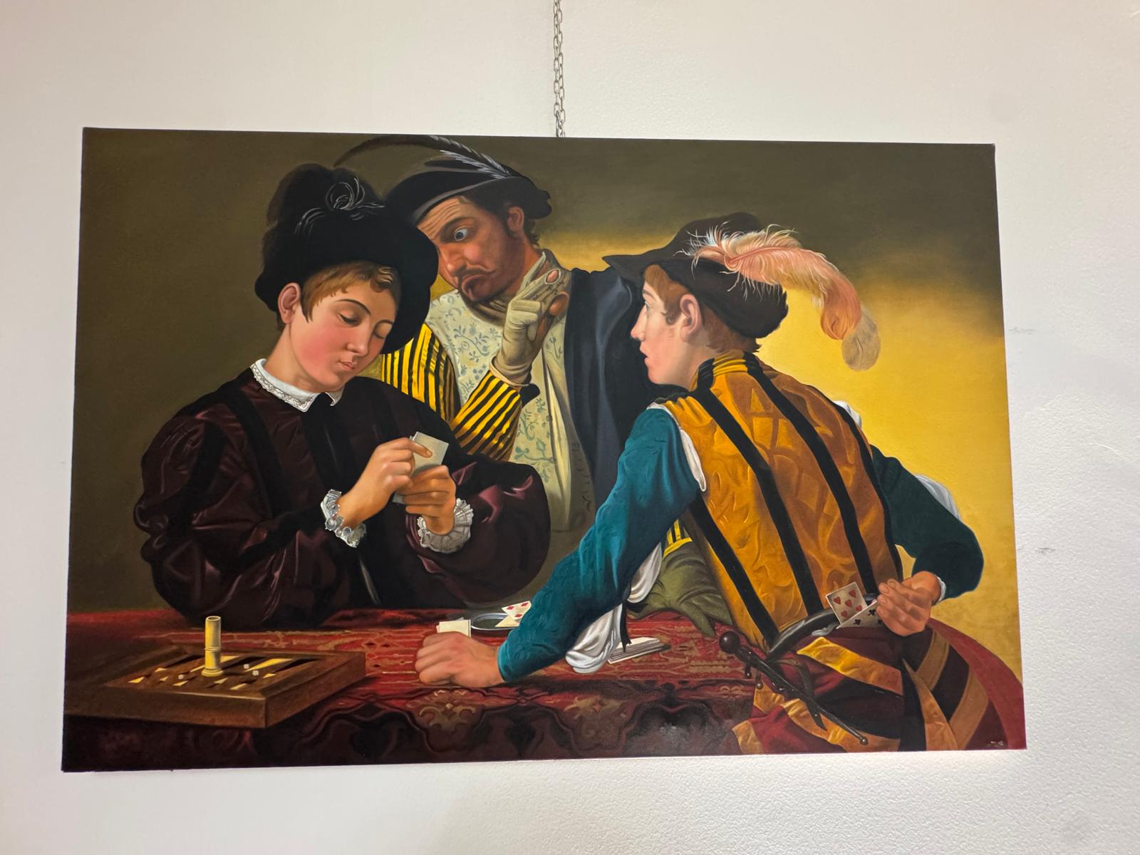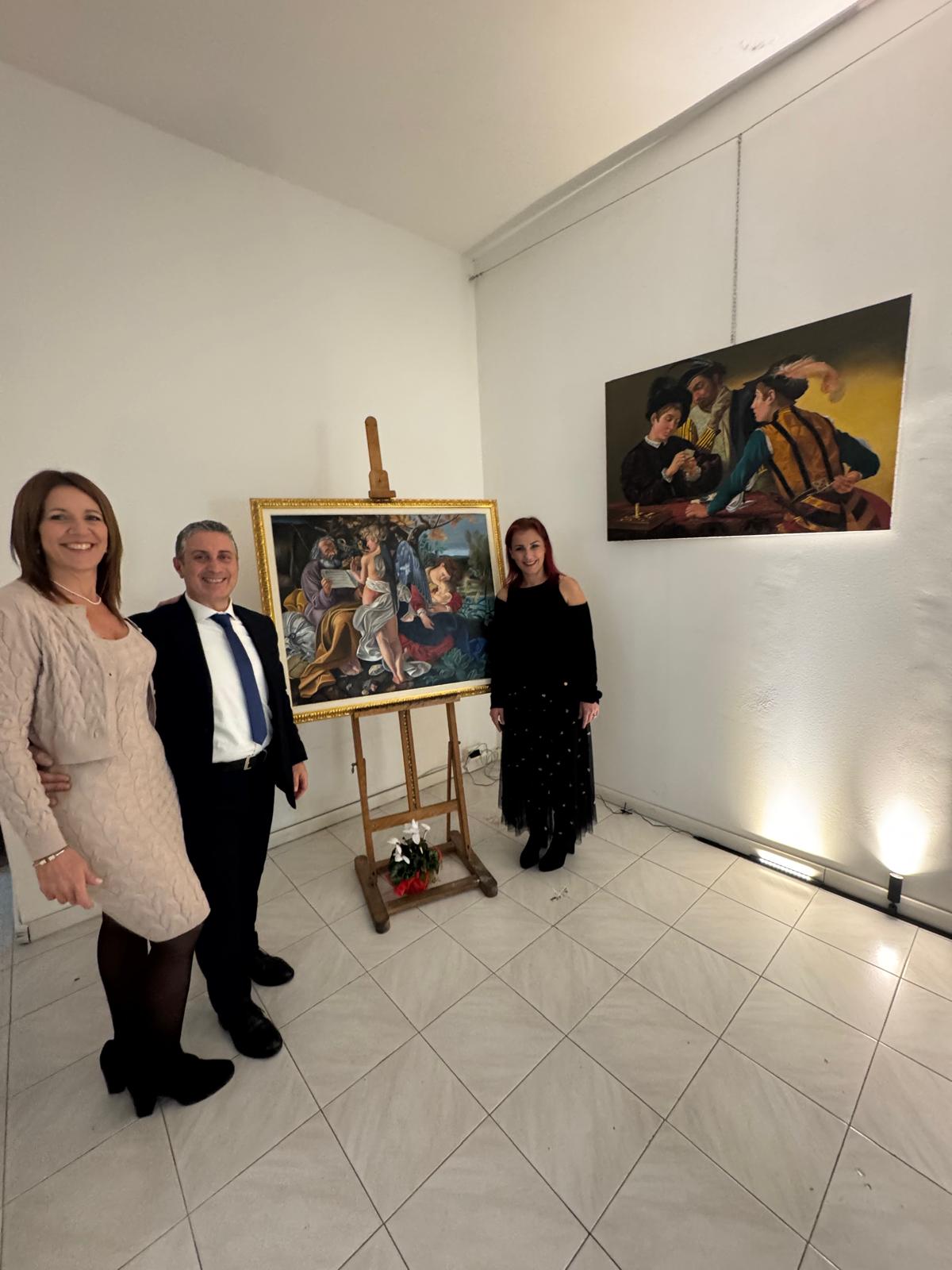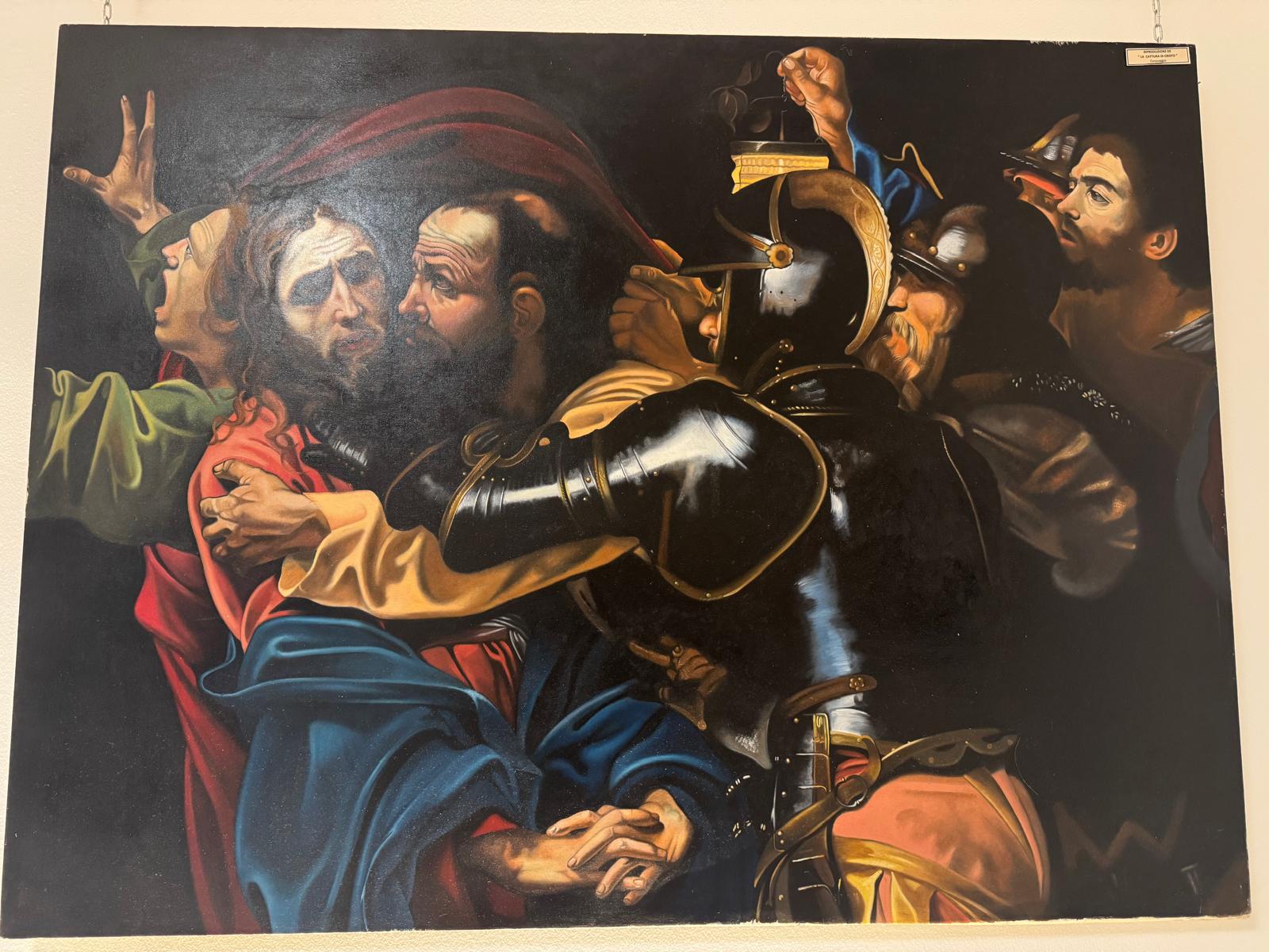 Nel corso dell’incontro, Valerio Vernesi ha sviluppato un’analisi approfondita del Riposo durante la fuga in Egitto di Caravaggio, soffermandosi sulla composizione, sull’uso della luce e sulla profonda umanità dei personaggi, elementi che rendono l’opera uno dei capolavori giovanili del maestro. Accanto a questo lavoro erano presenti altre tre repliche realizzate da Silvia Moccia, ispirate a celebri dipinti caravaggeschi: I bari, incentrato sul tema dell’inganno e della finzione; Amor Vincit Omnia, che indaga il rapporto tra umano e divino; e La cattura di Cristo, scena di forte intensità drammatica legata ai momenti della Passione. Nel corso della spiegazione, Vernesi ha sottolineato come la replica rappresenti un lavoro di studio e interpretazione, capace di restituire il linguaggio pittorico originale attraverso rigore tecnico e sensibilità artistica. L’intervento, chiaro e accessibile, ha mantenuto alta l’attenzione dei presenti, che hanno seguito con interesse l’analisi, soffermandosi sui dettagli pittorici e simbolici messi in evidenza dallo storico.