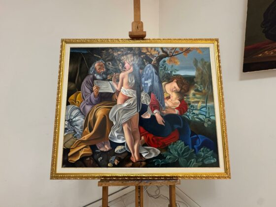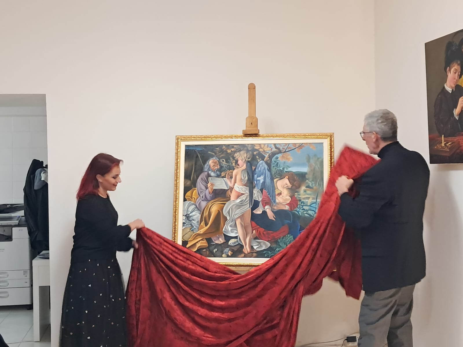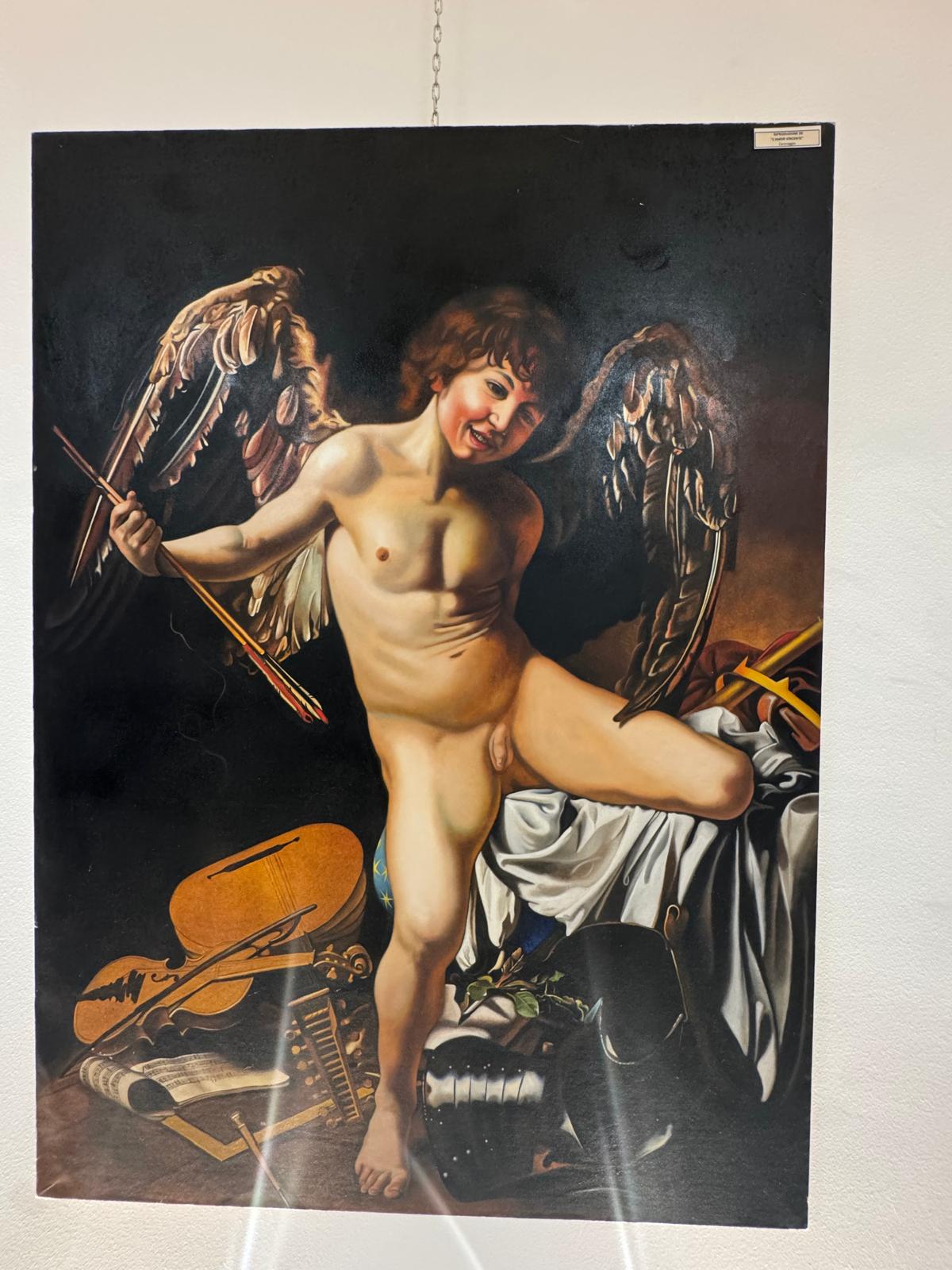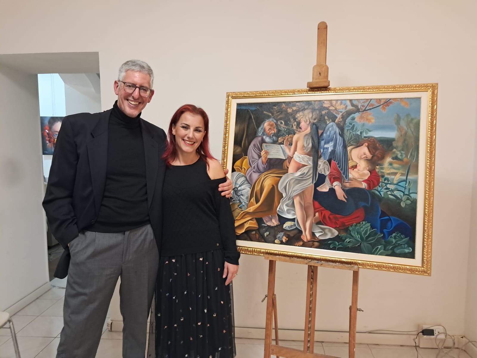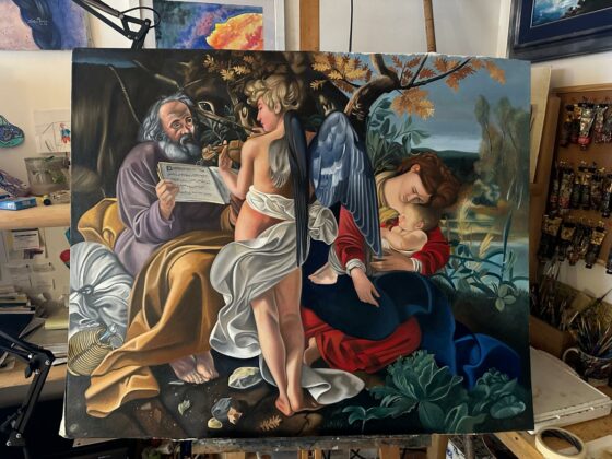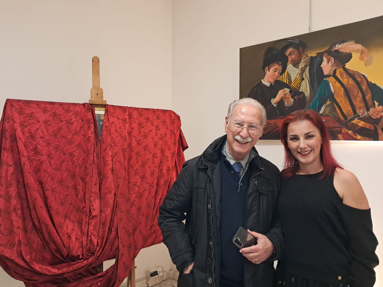 Nel corso dell’incontro, Valerio Vernesi ha sviluppato un’analisi approfondita del Riposo durante la fuga in Egitto di Caravaggio, soffermandosi sulla composizione, sull’uso della luce e sulla profonda umanità dei personaggi, elementi che rendono l’opera uno dei capolavori giovanili del maestro. Accanto a questo lavoro erano presenti altre tre repliche realizzate da Silvia Moccia, ispirate a celebri dipinti caravaggeschi: I bari, incentrato sul tema dell’inganno e della finzione; Amor Vincit Omnia, che indaga il rapporto tra umano e divino; e La cattura di Cristo, scena di forte intensità drammatica legata ai momenti della Passione. Nel corso della spiegazione, Vernesi ha sottolineato come la replica rappresenti un lavoro di studio e interpretazione, capace di restituire il linguaggio pittorico originale attraverso rigore tecnico e sensibilità artistica. L’intervento, chiaro e accessibile, ha mantenuto alta l’attenzione dei presenti, che hanno seguito con interesse l’analisi, soffermandosi sui dettagli pittorici e simbolici messi in evidenza dallo storico.