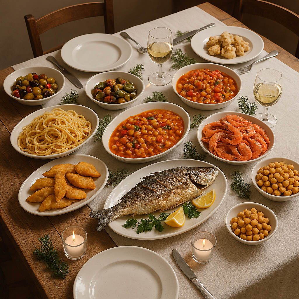 In molte tradizioni cattoliche, la cena della Vigilia osserva la forma di un digiuno rituale: non una privazione, ma un gesto di rispetto. È la cosiddetta cena “di magro”, che rinuncia alla carne rossa, simbolo di opulenza e festa, e si rivolge invece a cibi più umili, più puri, come se la tavola dovesse imitare la povertà della grotta.