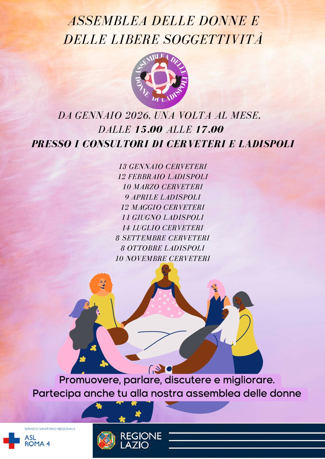 A partire da questo mese l’ Assemblea delle donne e delle libere soggettività sarà presente anche presso il Consultorio di Cerveteri secondo il calendario riportato.