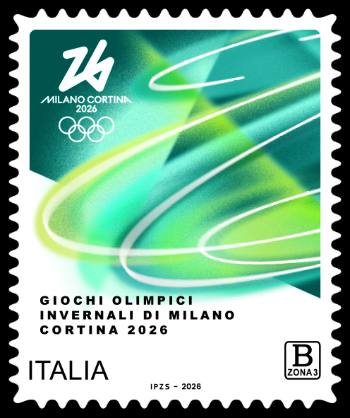 Bozzetti a cura della fondazione Milano Cortina 2026 e ottimizzato dal Centro Filatelico dell’Officina Carte Valori e Produzioni Tradizionali dell’Istituto Poligrafico e Zecca dello Stato S.p.A.