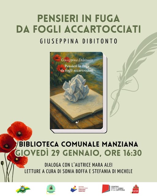 Biblioteca Comunale Di Manziana, accompagnata dalla Prof.ssa e scrittrice Mara Alei, la sua ultima raccolta di poesie “Pensieri in fuga da fogli accartocciati”.