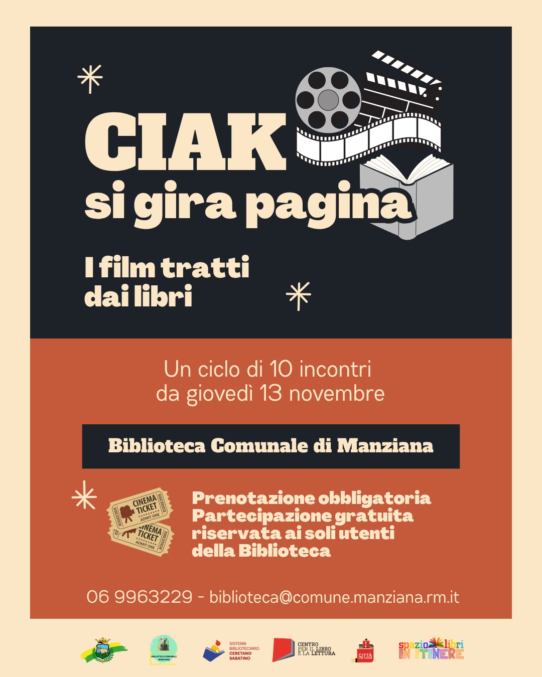 L’dea di ciack si gira pagina, i film tratti dai libri è nata da una passione per il cinema e per i libri, le referenti della biblioteca mi hanno contattata, io ho uno spazio culturale a Trevignano Romano e da qui è nata l’idea di creare una rassegna che parlasse di trasposizioni cinematografiche tratte da libri.