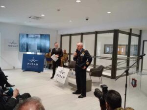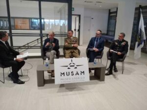 Si sono succedute relazioni ed esposizioni di alto profilo, come quella della d.ssa Ognibene, archeologa, storica, curatrice scientifica dell’allestimento del museo, che ha osannato il lavoro di squadra svolto in sinergia con diverse persone; il MUSAM, ha detto, prende forma tra il 2020 e il 2023, in piena pandemia e lo racconta come un organismo vivente e non semplicemente un luogo di conservazione; ogni dettaglio della progettazione e della realizzazione di uno spazio museale viene pensato per fare cultura, che può essere promossa soltanto attraverso la didattica. Un lavoro di ricerca con cui si cerca di mettere in risalto i cimeli dal più forte impatto emotivo. La curatrice spiega che tutto è stato ed è sapientemente studiato, a partire dal brand di identità, il logo identitario la cui parte grafica si è ispirata al modello di un aereo S55.