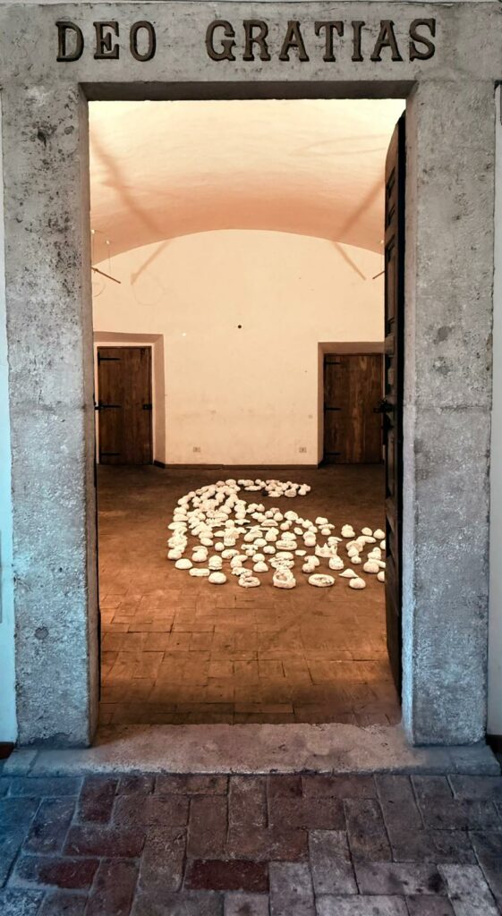 Gli studenti del liceo artistico βPacioloβ di Anguillara Sabazia, sotto la guida attenta delle professoresse Viviana Ravaioli e Patrizia Santoro, hanno realizzato unβopera corale, messa in mostra a S. Oreste trasformando un antico pavimento in cotto del XVI secolo in un paesaggio simbolico: una spirale composta da centinaia di pani in argilla cruda, candida, che si origina da un unico pane in argilla scura, metafora di nascita e memoria; racconto di unβItalia fatta di territori e tradizioni, di comunitΓ che si riconoscono nel gesto quotidiano del pane.