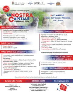 In occasione della Giornata Nazionale del Gatto, che si celebra in tutta Italia il 17 febbraio, Città metropolitana di Roma Capitale – con il patrocinio dell’Assessorato all’Ambiente di Roma Capitale e in collaborazione con l’Ufficio del Garante per il Benessere e la Tutela degli Animali di Roma Capitale – organizza per il secondo anno consecutivo un grande evento pubblico dedicato ai felini e a tutte le persone che ogni giorno si impegnano per la loro cura e tutela.