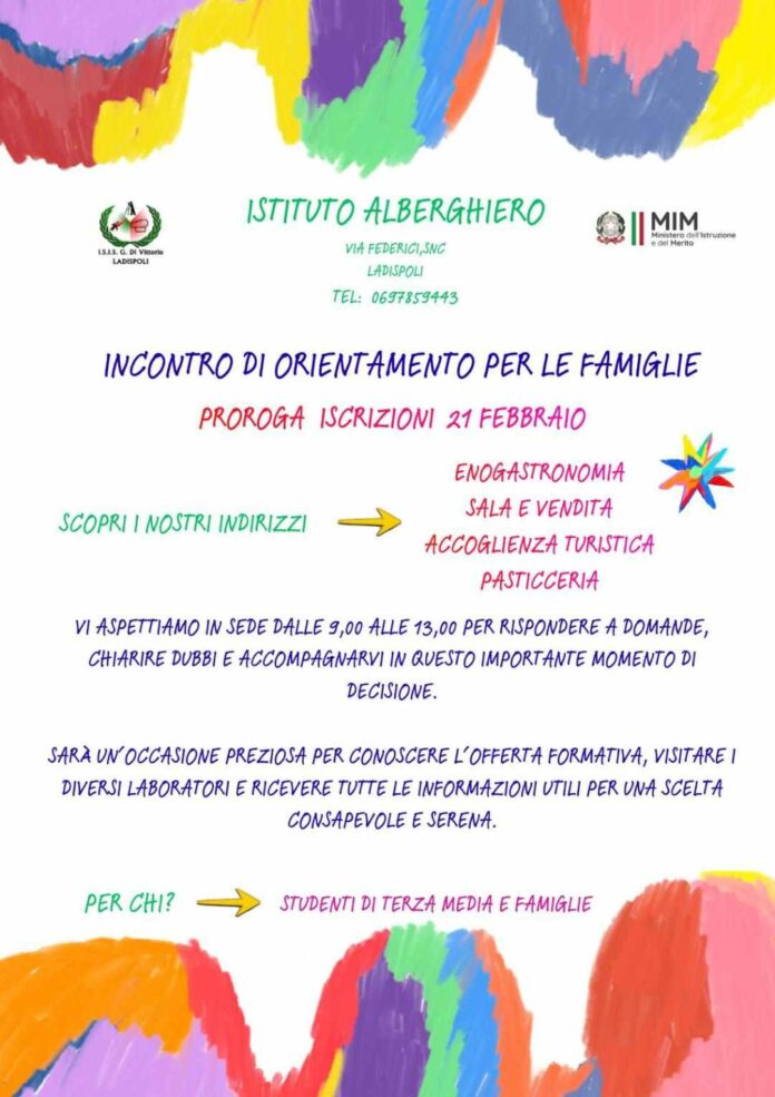 I genitori che desiderano conoscere più da vicino l’Istituto Alberghiero e la sua straordinaria offerta formativa possono venire in sede dalle 9 alle 12. Vi aspettiamo!!!