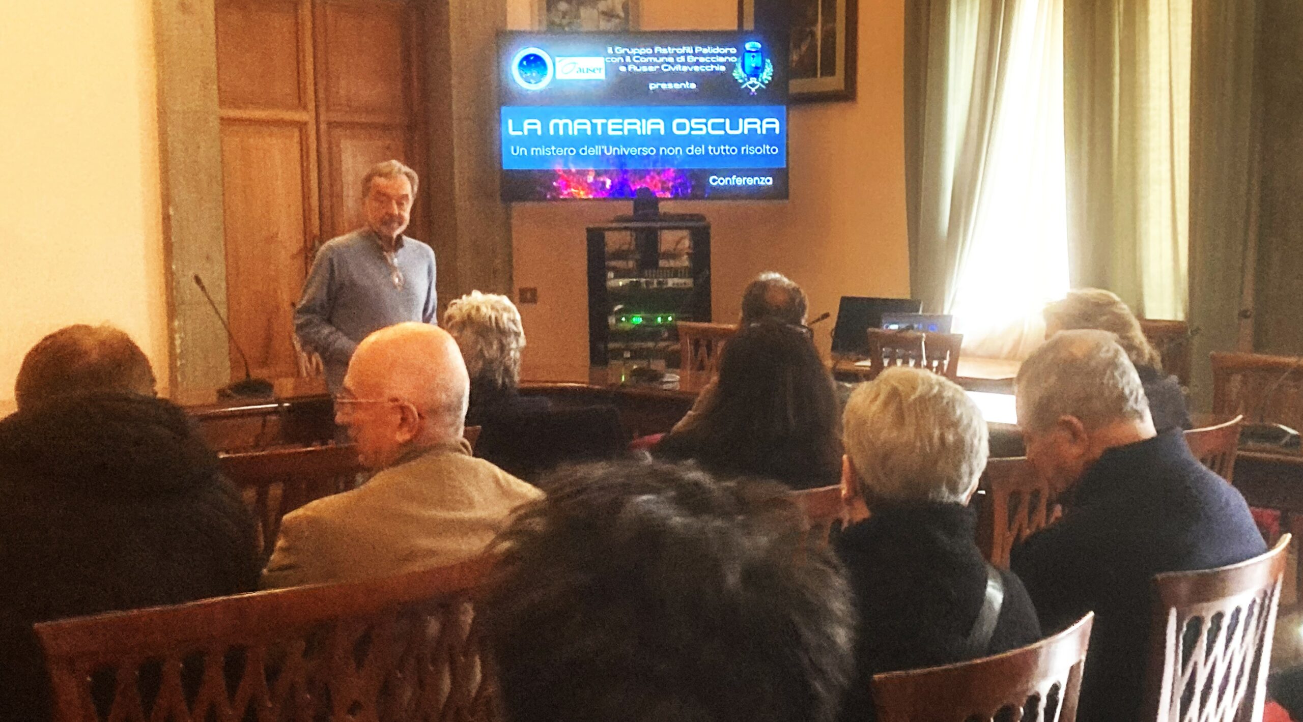Il 18 febbraio, nella sala consiliare del Comune di Bracciano, si è tenuta una conferenza dedicata alla “materia oscura”, nell’ambito di un ciclo di incontri promossi da AUSER e dal “Gruppo Astrofili Palidoro” con il supporto dell’amministrazione comunale di Bracciano. Relatore della serata Carlo Vincenti, che ha guidato il pubblico in un viaggio tra osservazioni astronomiche, ipotesi teoriche e interrogativi ancora aperti sulla composizione dell’universo.