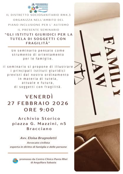 Il 27 febbraio, presso l’Archivio Storico di Piazza Mazzini 5 – Bracciano, il Distretto Sociosanitario RM 4.3 organizza un seminario informativo nell’ambito del Piano Inclusione per l’Autismo.