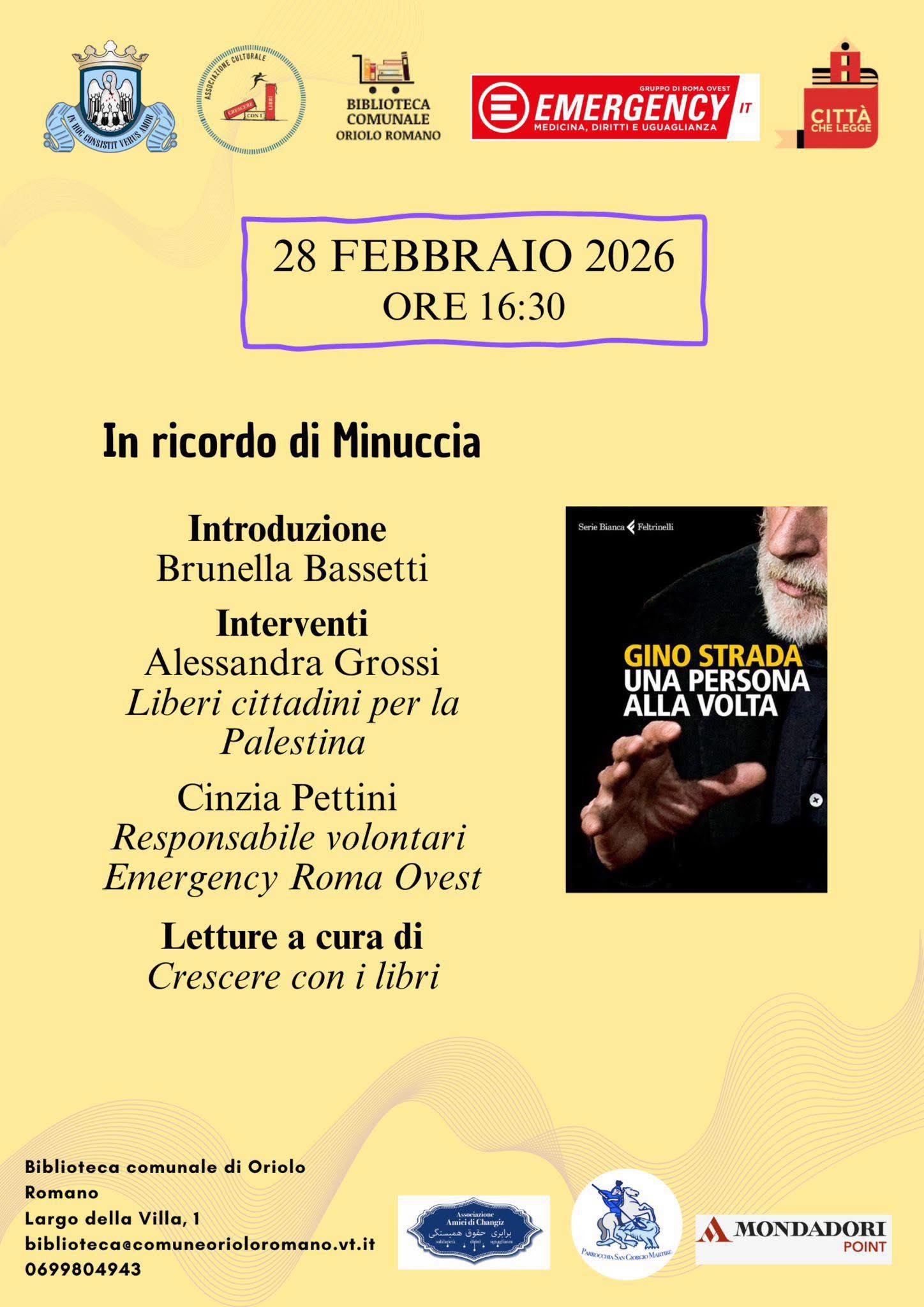 Vi aspettiamo in Biblioteca Comunale di Oriolo Romano per un pomeriggio dedicato alla solidarietà e alla cultura.