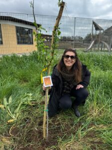 Abbiamo inoltre insegnato agli studenti come si mette a dimora una pianta, realizzando una buca ben più grande del vaso, poi chiaramente è importante avere un tutore, una canna o un palo, per farla crescere in modo dritto. Abbiamo aggiunto anche un po’ di pacciamatura, ossia cortecce secche che si mettono intorno al tronco per mantenere le radici umide e proteggerle dal caldo e dal freddo.