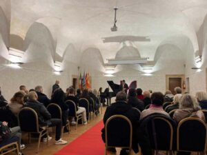 “Venerdì sera in Sala Ruspoli abbiamo vissuto una serata emozionante, con una musica straordinaria che ha saputo toccare il sentimento e il cuore del pubblico. Un secondo appuntamento con la rassegna ‘Note per la Ricerca’ che ha visto esibirsi Alessandro Scalone al sassofono e Susanna Pagano al pianoforte in un concerto durante il quale hanno eseguito un repertorio che ha spaziato dal classico al contemporaneo e terminato con una lunga standing ovation da parte dei tantissimi spettatori presenti. Non solo musica però, ma anche solidarietà: raccolti 305,00 euro a sostegno di Aism – Associazione Italiana Sclerosi Multipla, un ulteriore contributo alle attività dell’Associazione impegnata da oltre mezzo secolo nel finanziare attività di Ricerca Scientifica e nel garantire assistenza, sostegno e diritti a persone con Sclerosi Multipla”. A dichiararlo è Adele Prosperi, Consigliera comunale di Cerveteri e Volontaria Aism da 13anni, a margine del concerto del “Duo Scalone – Pagano” tenutosi venerdì 27 febbraio in Sala Ruspoli a Cerveteri.