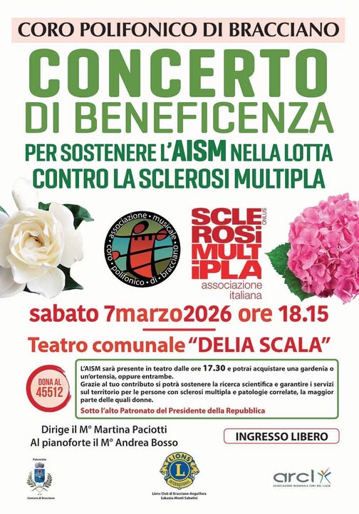 Il Coro Polifonico di Bracciano vi invita a partecipare a un concerto di beneficenza a sostegno dell’AISM – Associazione Italiana Sclerosi Multipla, impegnata ogni giorno nella lotta contro la sclerosi multipla.