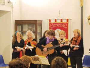 Ad interpretarli sono state “le Canterine”, dirette dalla maestra Emanuela Marrucci che ha accompagnato con la chitarra la rievocazione di una selezione di canti della tradizione recuperati grazie a un lavoro originale e strutturato di Laura Ammannato, etnomusicologa che nel 1999 ne fece la sua tesi di laurea al Dams di Bologna.