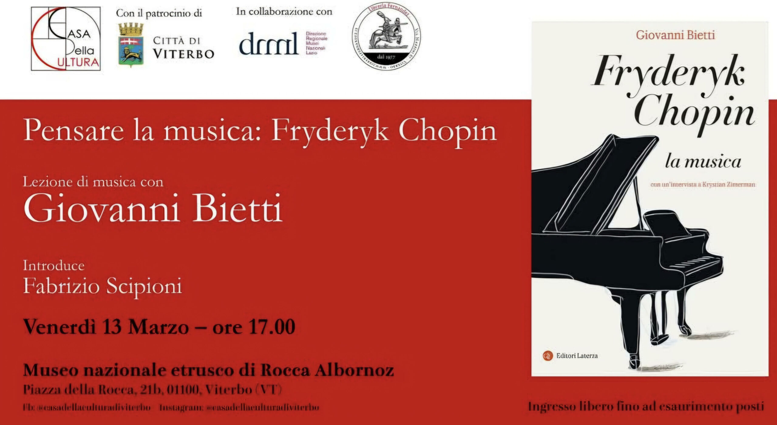 Venerdì 13 marzo alle ore 17:00 siete invitati all’incontro “Pensare la musica: Fryderyk Chopin – Incontro con Giovanni Bietti” in occasione della presentazione del suo ultimo volume dedicato al grande compositore polacco.