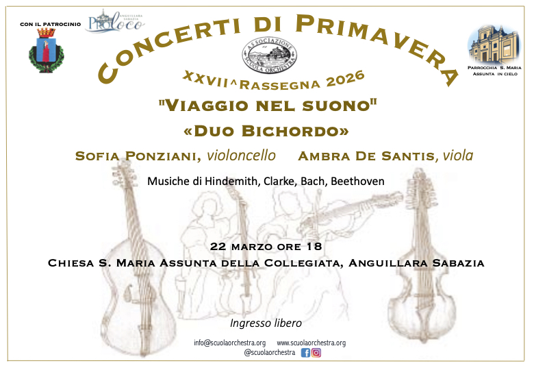 Hanno dato vita al  “DUO BICHORDO” e come cornice per il loro debutto ad Anguillara hanno scelto la Chiesa della Collegiata, dove ci regaleranno un dialogo sonoro, nella piena e pura fiducia di cui i giovani sono capaci.