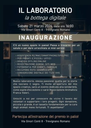 Nel cuore di Trevignano Romano, sabato 21 marzo, ha aperto le sue porte “Il Laboratorio – la bottega digitale” di Andrea De Ieso: uno spazio che unisce competenze tecniche, creatività e attenzione al territorio. Il laboratorio nasce temporaneamente all’interno della galleria Antonella Rizzo, grazie alla disponibilità del proprietario Costantino Liquori, regista con una lunga esperienza televisiva e autore di numerosi documentari per Rai 3, che ha messo a disposizione lo spazio per accogliere e sostenere questa iniziativa sul territorio.