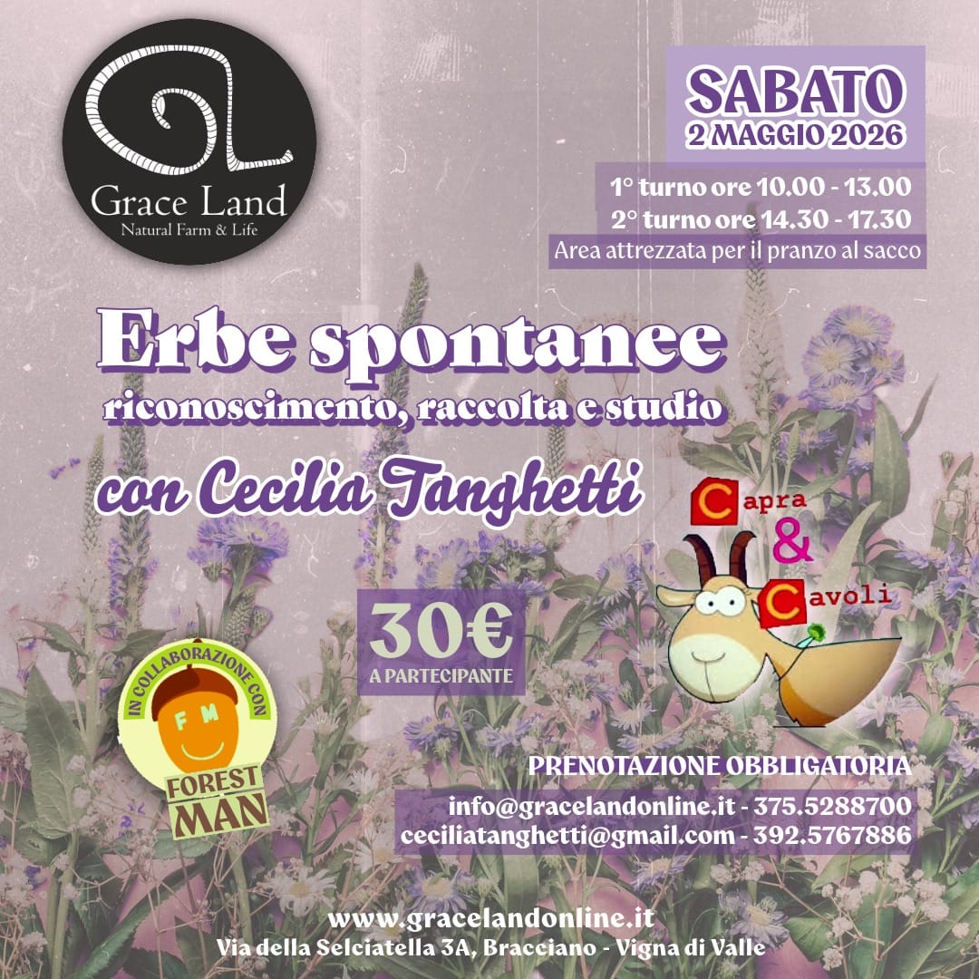 Evento importante del 2-3 maggio tra Bracciano e Canale Monterano sul riconoscimento e utilizzi delle erbe spontanee commestibili, con un’associazione di riferimento a livello nazionale nota blogger molto conosciuta e seguita, CapraeCavoli https://www.youtube.com/@CAPRAECAVOLI con circa 30k iscritti.