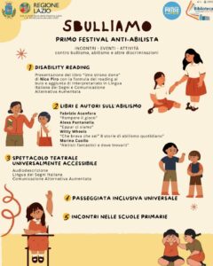 A Cerveteri arriva “Sbulliamoci”, il primo Festival anti-abilista, organizzato dal “Disability Pride Italia” insieme alla Biblioteca comunale Nilde Iotti. Esordio fissato per giovedì 2 aprile, data che coincide con la Giornata Mondiale sulla consapevolezza sull’autismo.