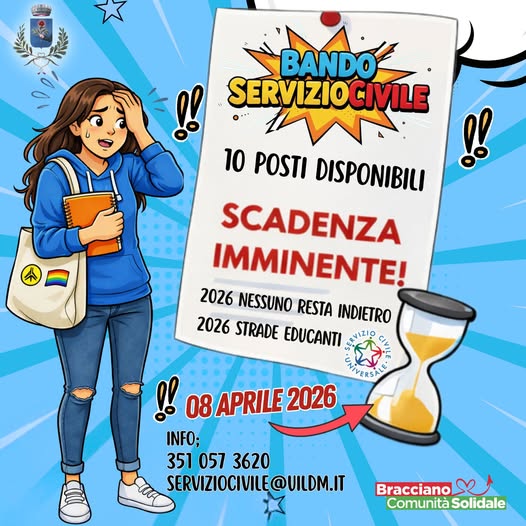 BRACCIANO : 𝐌𝐚𝐧𝐜𝐚𝐧𝐨 𝐩𝐨𝐜𝐡𝐢 𝐠𝐢𝐨𝐫𝐧𝐢 alla scadenza del 𝐁𝐚𝐧𝐝𝐨 𝐝𝐞𝐥 𝐒𝐞𝐫𝐯𝐢𝐳𝐢𝐨 𝐂𝐢𝐯𝐢𝐥𝐞 𝐔𝐧𝐢𝐯𝐞𝐫𝐬𝐚𝐥𝐞.