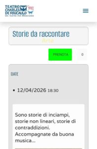 HomeCultura “Storia da raccontare” al teatro De Focauld di Bracciano 09/04/2026 0 81 E-mailTwitterWhatsAppFacebookPinterestLinkedinReddItTumblrTelegramViberStampa TagsDe Focauldraccontarestorieteatro Condividere E-mailTwitterWhatsAppFacebookPinterestLinkedinReddItTumblrTelegramViberStampa Articolo precedente“Gran Galà”: concerto di beneficienza organizzato dai LionsArticolo successivo“Tornare in Montagna per la Libertà” la presentazione a Ladispoli Ultimi articoli Eventi MODA: A ROMA “FILI DI SPERANZA”. VANELLA FOGLIA RACCONTA STORIE DI RINASCITA CON “VITAE”, UNA SFILATA CHE TRASFORMA L’ABITO IN IDENTITA’ ED EVOLUZIONE Territorio Giornata della donazione del sangue a Cerveteri Cultura “Tornare in Montagna per la Libertà” la presentazione a Ladispoli Cultura “Gran Galà”: concerto di beneficienza organizzato dai Lions Società Solidarietà a Vejano: “Camminiamo Insieme per Elena” – 1ª Edizione Carica altri
