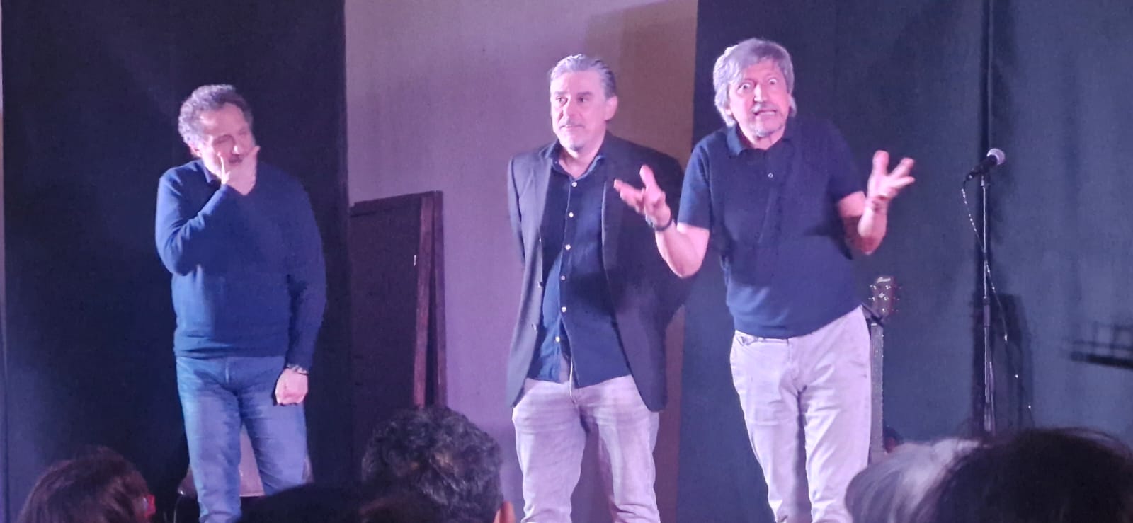 Lo spettacolo si è rivelato esilarante con l’alternanza di scenette e monologhi con piacevolissimi intermezzi musicali, la sala si è divertita molto, i comici sono stati davvero bravi si perché far ridere non è cosa da poco: scegliere i tempi comici, orientarsi con la sala ed i suoi disturbatori, puntualmente sfidati dai comici che solitamente mettono in ridicolo la loro disattenzione e a volte maleducazione.