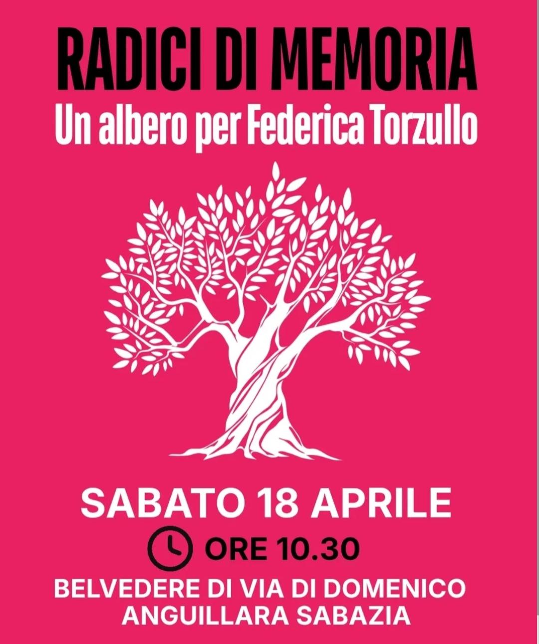 Sabato 18 aprile 2026, su iniziativa del Coordinamento “ZittaMai”, alle ore 10.30 ad Anguillara Sabazia si svolgerà una cerimonia presso il Belvedere di Via Di Domenico in memoria di Federica Torzullo.