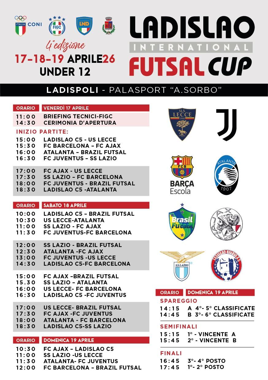 In campo Ladislao C5, U.S. Lecce, FC Barcellona, FC Ajax, Atalanta, Brazil Futsal, FC Juventus e S.S. Lazio