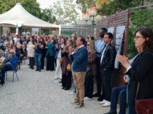Sarà stato il colpo d’occhio sui numerosi partecipanti in una giornata finalmente primaverile, la moltitudine di colori che investivano il piazzale e i prati verdi circostanti cui lo sventolio delle “belle bandiere”, come le chiamava il poeta Pier Paolo Pasolini, dava il giusto senso d’appartenenza ma anche un forte segnale di unità.