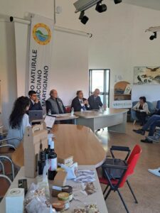 “Innanzitutto vi ringrazio per la nostra presenza, è fondamentale per noi avere una comunicazione importante per tutto il territorio. Oggi, come commissario, sto cercando di tutelare, di dare un’impronta, di essere uno strumento per i sindaci, per tutte le città che lo compongono che possono superare situazioni di campanilismo e di difficoltà oggettive che ci sono nella gestione quotidiana dei paesi e delle città. Ecco l’obiettivo nostro è questo: partiamo per far conoscere l’eccellenza che c’è, i posti sono meravigliosi, la gente è meravigliosa in quest’area ma soprattutto ci sono delle eccellenze, partiamo da queste. Abbiamo chiamato uno a uno tutte le aziende agricole che sono all’interno del parco, abbiamo parlato con i sindaci, con gli assessori competenti e cerchiamo di far partire questa manifestazione. Questa tre giorni, non è una fiera ma è soltanto un portare a conoscenza sia dei cittadini che delle piccole e medie imprese del territorio, questa produzione che abbiamo locale. Lo ripeteremo in futuro anche per altre categorie, come c’è stato richiesto anche oggi nella riunione, mi riferisco alla pesca, e vediamo insieme ai cittadini, insieme alle medie e piccole imprese del territorio di far crescere quest’area che francamente merito molto”.