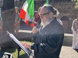 agli Assessori presenti, ai rappresentanti del Consiglio comunale, alle Forze dell’Ordine, alle Associazioni d’Arma, di Volontariato, ai Rioni, alla Protezione Civile Comunale, al nostro speaker Giacomo Rinaldi e ai musicisti e musiciste del Gruppo Bandistico Cerite. Ma soprattutto, buon 81° anniversario della Liberazione d’Italia.