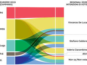 Gli accordi fatti da De Luca con i vari De Mita e Mastella sono una delle ragioni del suo successo. Un’altra è il numero di liste che lo sostengono, addirittura 15. Anche queste fanno parte di una precisa strategia di raccolta di consensi. Questa è la politica in Campania. E De Luca sa come adattarvisi. Anche per questo il centro-sinistra a livello proporzionale viene stimato oggi al 44,8%, mentre alle politiche del 2018 aveva preso il 16,4% e alle europee dello scorso anno il 23,1.
