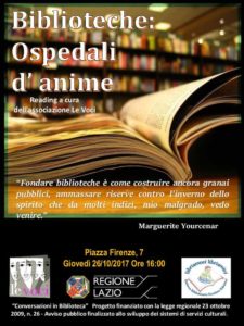 Appuntamento da non perdere per gli amanti della lettura. Giovedì 26 ottobre, a Manziana, l’Associazione Culturale “Le Voci” ha organizzato una performance teatrale sul tema della lettura come cura della mente e dello spirito. Tutto a partire da una suggestione di Marguerite Yourcenar, scrittrice francese di grande talento e prima donna ad entrare a far parte della Académie française, scomparsa nel 1987: